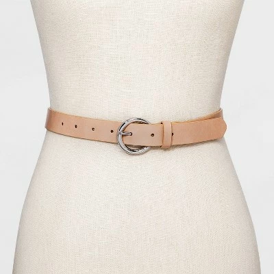 Fasten your look together for any occasion with this Round Buckle Belt from A New Day™. In a solid hue, this women’s belt makes a versatile choice in your accessories collection. It features a silver round buckle closure for a polished look, and the multiple hole adjustments offer a customized fit to make sure your pants or skirts stay securely in place. Whether paired with a blouse and jeans combo or wrapped around a dress, this round buckle belt makes a versatile addition to your closet.