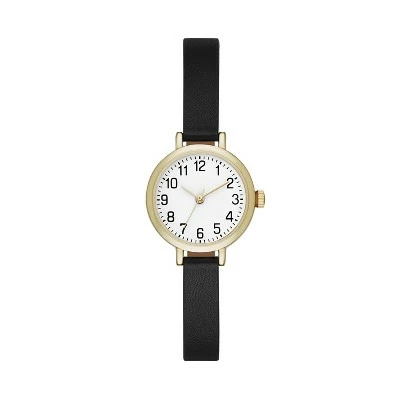 Keep your look as classic as ever with the Full Arabic Watch from A New Day™. With a metallic case surrounding the face, this simple women’s watch features black Arabic numbers all around the face for easy reading when you’re on the go. The neutral faux-leather band makes this watch an easy addition to office-friendly outfit or your weekend looks.