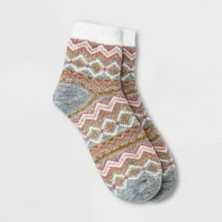 Buy 🔔 Women's Fair Isle Double Lined Cozy Ankle 🧦 Socks – A New Day™ Heather Gray/Pink/Gold 4-10 ⌛