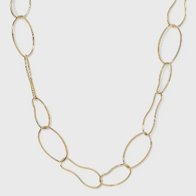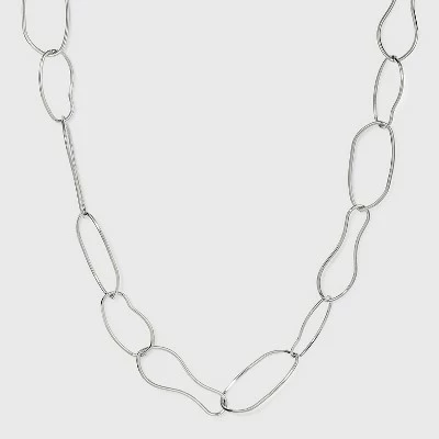 If you like jewelry with an artisanal look and feel, add the Abstract Chain Necklace from A New Day™ to your collection. The connected links in this necklace have unique, sculptural shapes that add a handmade vibe, and the size of the links adds a dramatic look. Crafted from metal with a silver finish, this abstract link necklace easily complements your go-to bracelets or everyday earring pick. Plus, the lobster-claw clasp and extender chain provide versatile wear. Whether you’re dressing up a work ensemble or a date night look, this necklace brings standout style to the table.