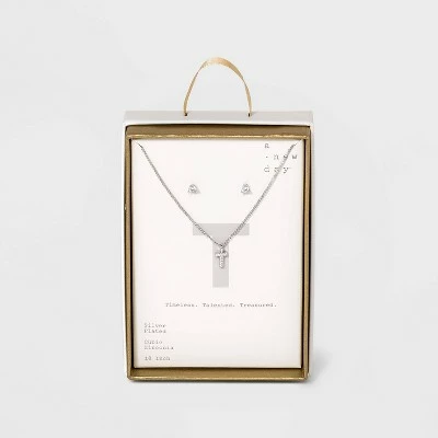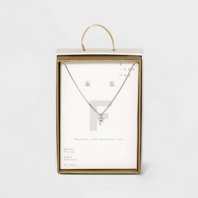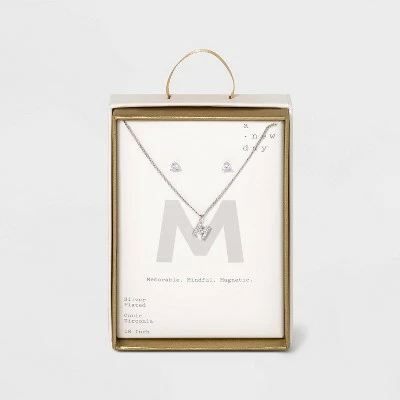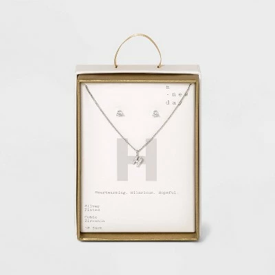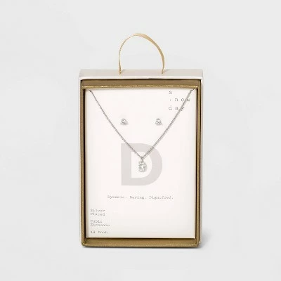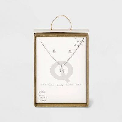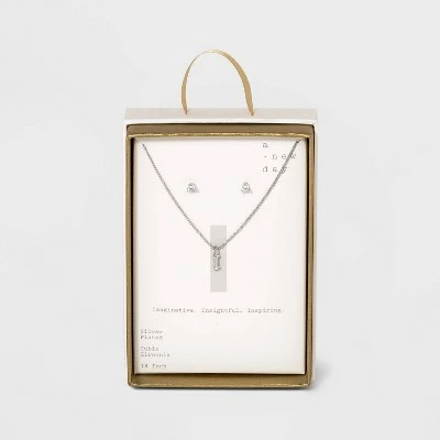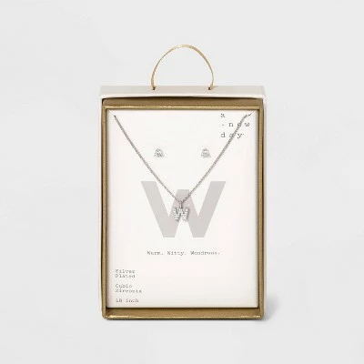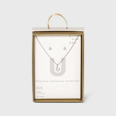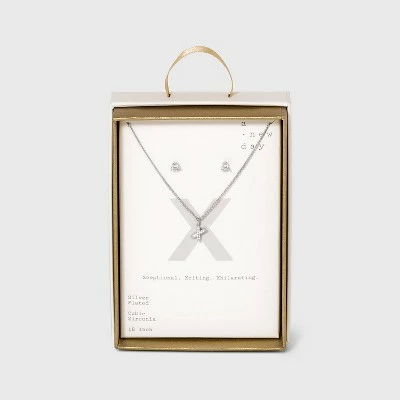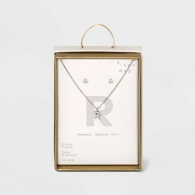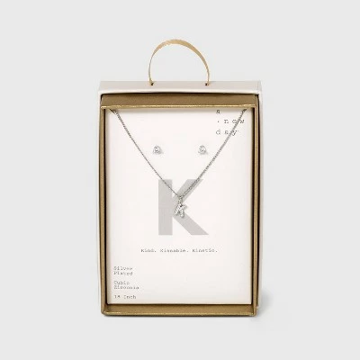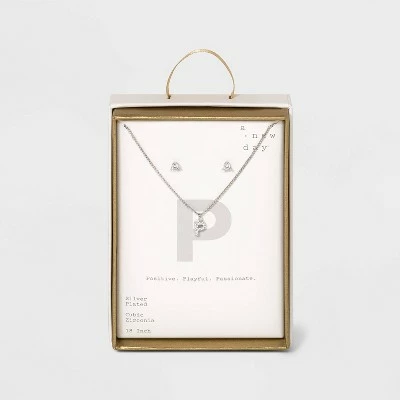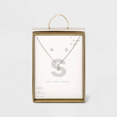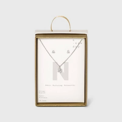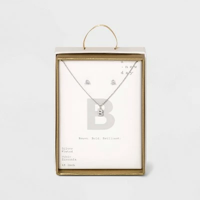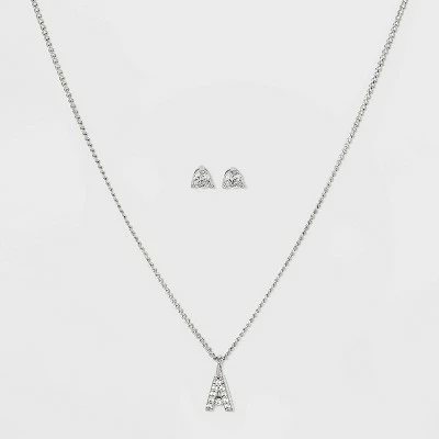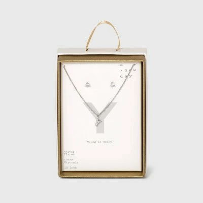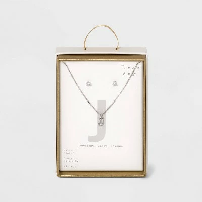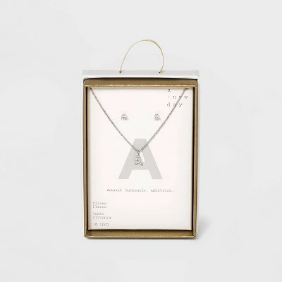 Whether it’s your birthday, a romantic dinner date or any other occasion, this Silver Plated Cubic Zirconia Pave Initial Pendant Necklace and Earring Set from A New Dayโข will work well to accentuate your outfits. This sterling silver necklace set includes a pendant necklace as well as a pair of stud earrings for a complete look. The necklace comes with a long-linked chain accented with a stone studded initial pendant for glamorous appeal. It comes with an extender chain to help you adjust the length, and easily closes with a spring ring clasp closure for a secure fit. Great to wear alone or paired with other accessories, this initial pendant necklace adds instant sparkle to all your outfits.