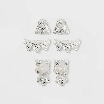Give your jewelry collection an effortless update from this 3-Piece Sterling Silver Cubic Zirconia and Faux Opal Stud Earring Set from A New Dayโข. Each of the three pieces has a coordinating, feminine design in a silver-plated finish. Two feature studded triangular shapes made up of semi-precious cubic zirconia, and the other are rounded pieces with faux opal studs. They give a gorgeous shine in the light that you’ll love showing off to friends, and the silver color makes them easy to coordinate with almost anything in your wardrobe. Post back closures let you get them on and off with ease, and a nickel-free construction makes them suitable for most skin types.