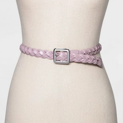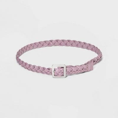 Weave together your look for any occasion with this Woven Belt from A New Dayโข. In a soft solid hue, this women’s belt makes a versatile addition to your accessories collection. It features a silver-tone buckle and wrapped end tip for a polished look, and the braided design allows for a customizable fit. Whether paired with a blouse and jeans combo or wrapped around a dress, this square-buckle belt is a stylish addition to your closet.