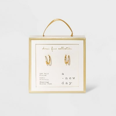 Give your favorite outfits a fresh new upgrade with the 14K Gold Plated Cubic Zirconia Double Hoop Earrings from A New Dayโข. These stylish hoop earrings are made out of 14k gold-plated, nickel-free material and feature cubic zirconia stones that add the perfect touch of shine and sparkle to your looks. A post closure style helps keep these earrings in place as you go about your day.