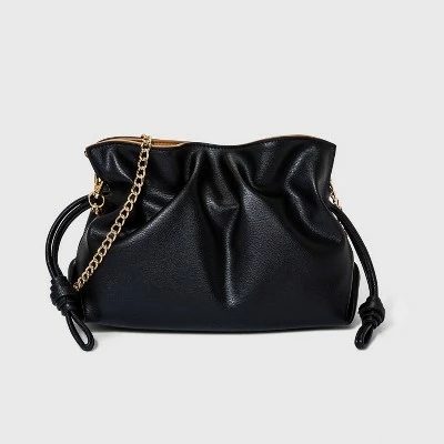 Add the perfect amount of style and function to your everyday or dressy looks with the Magnetic-Closure Soft Clutch from A New Day™. Made of faux leather in a solid hue, this soft textured bag has a spacious main compartment to stash your essentials, and it cinches closed with drawstring pulls, while the magnetic closure keeps items from falling out. Complete with an adjustable and removable gold-tone chain strap, this fashion bag can be carried in your hand, over one shoulder or across your body to suit your style and your day.