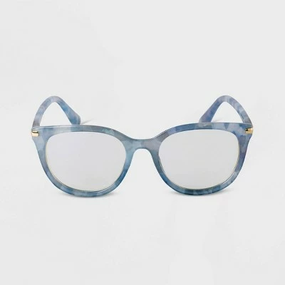 Bring style and functionality to your everyday accessory collection with these Marble-Print Cat-Eye Blue Light Filtering Reading Glasses from A New Day™. Made with lightweight plastic frame in a chic cat-eye shape, these marble-print glasses come in blue hues to complement a variety of your outfits. Their blue light filtering lenses help prevent eye strain due to prolonged use of computer screens, laptops and mobile phones. Great to wear for work at home or the office, these cat-eye blue light filtering glasses come in a medium width to flatter most faces.