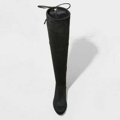 Get ready to step out in style wearing these Sidney Over-the-Knee Boots from A New Day™. Featuring an over-the-knee design with a pointed toe to add to the drama, these medium-width boots feature a 1.5-inch block heel for added height. The cushioning on the inside ensures your feet stay comfy, while an attached tie cinches them to let you find the best fit. In a solid suede finish with tonal stitch detailing and a side partial zipper for added flair, they make the perfect pick with anything from a sweater dress to a midi skirt for edgy flair.